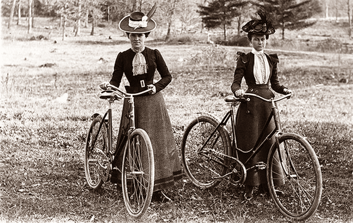 Старые фотографии свидетельствуют, что велосипеды были популярны также среди женщин.