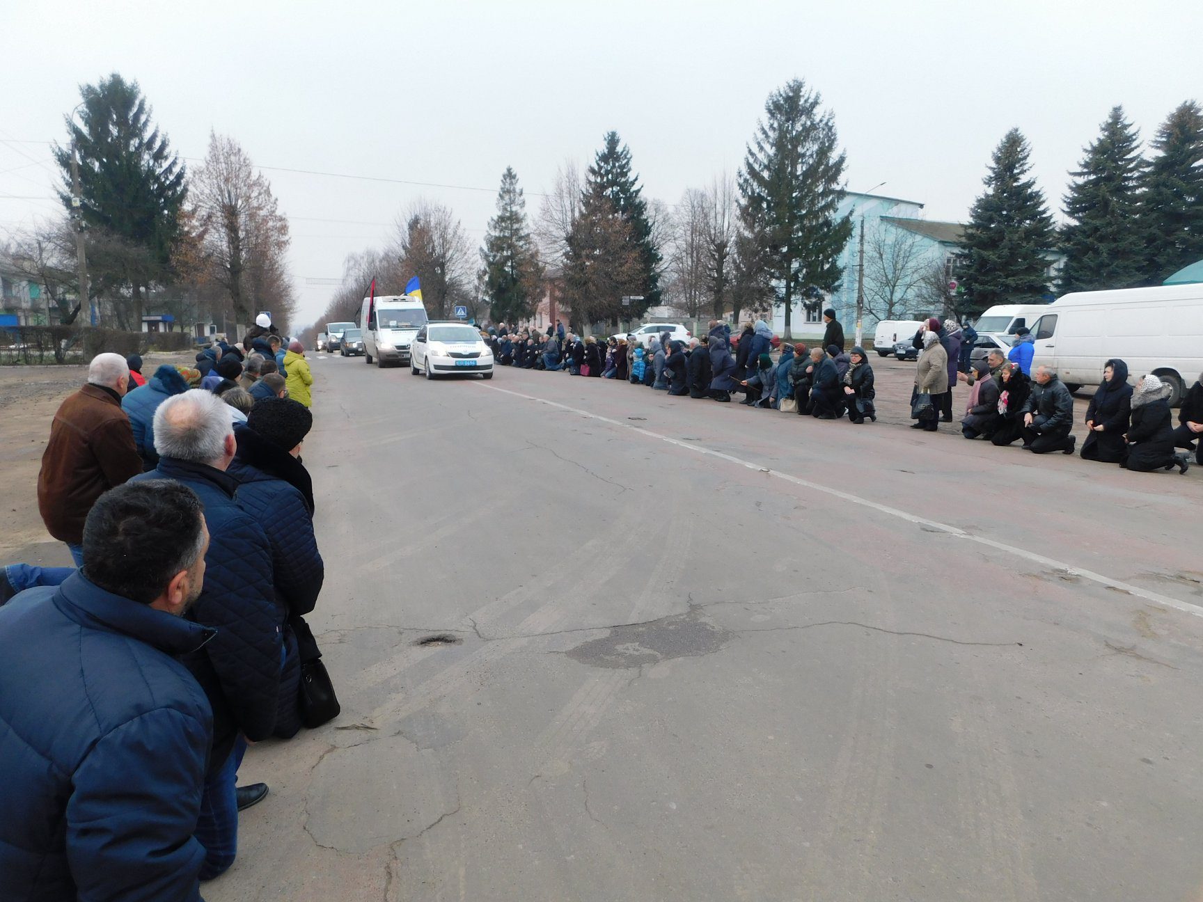 Вчора, першого грудня, кортеж із загиблим прибув на Рівненщину. Десятки гощанців зустрічали його на колінах. Далі колона проїхала через центр селища, Чудницю, Воскодави та Тучин до рідного села сержанта.